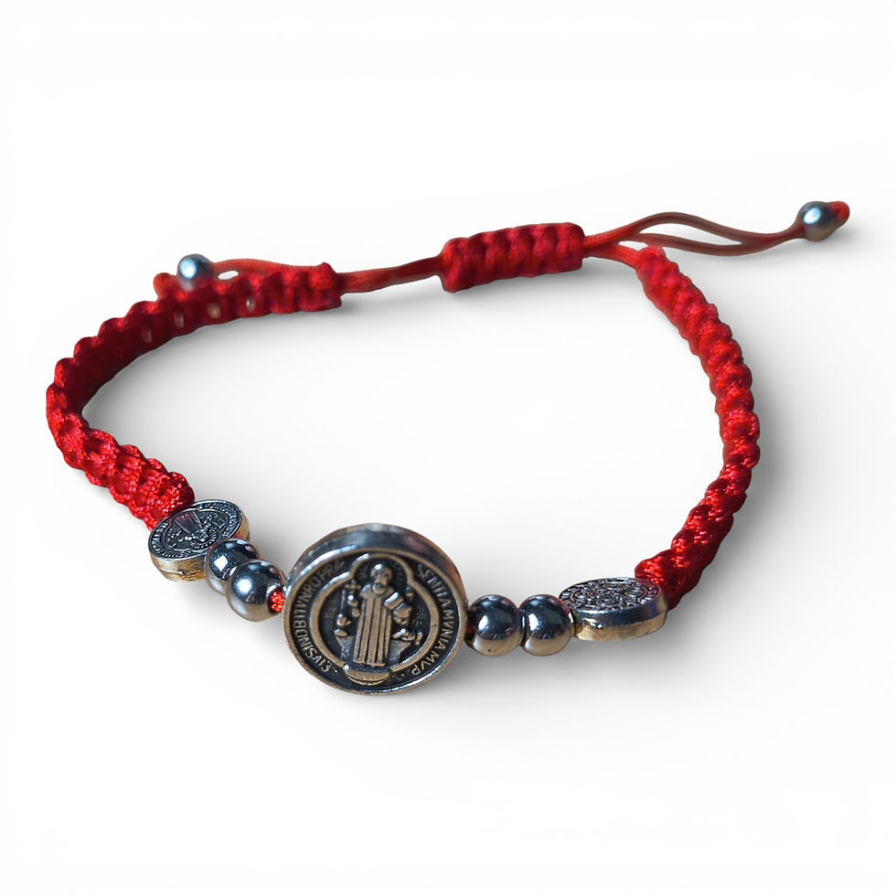 Holy Land Handmade Red Cord Bracelet with Saint Benedict Medal – Adjustable